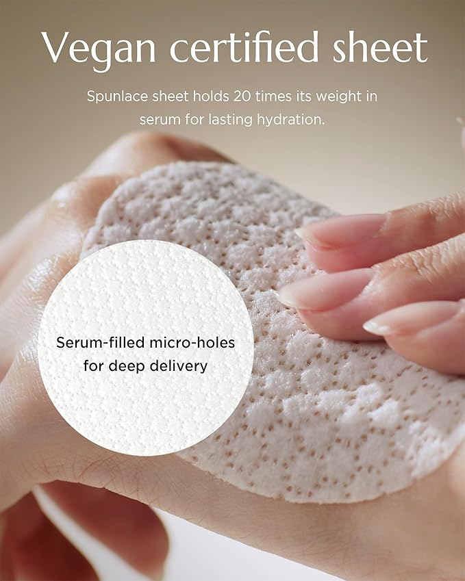 - FACE MASK SHEET DESIGN: Jumbo 8cm vegan certified natural origin pads using Spin Lace method hold 20x more serum than fabric weight with micro-holes for superior adhesion and extended treatment time
