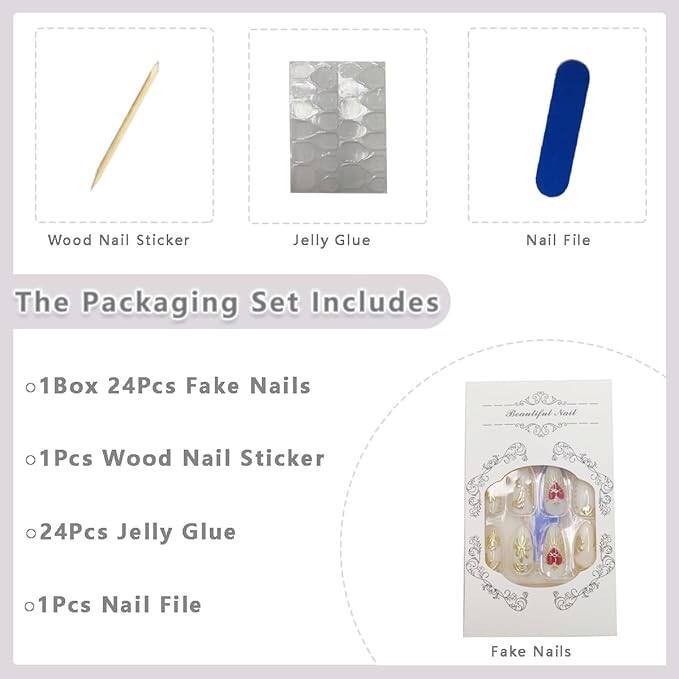 - Package: Our red heart fake nails is exquisite and beautiful. It contains 24 pcs medium almond press on nails and a set of DIY nail art tools (24 jelly glues+1 wood stick+1 nail file), there are 12 different sizes of fake nails, which is very suitable for manicure decoration.