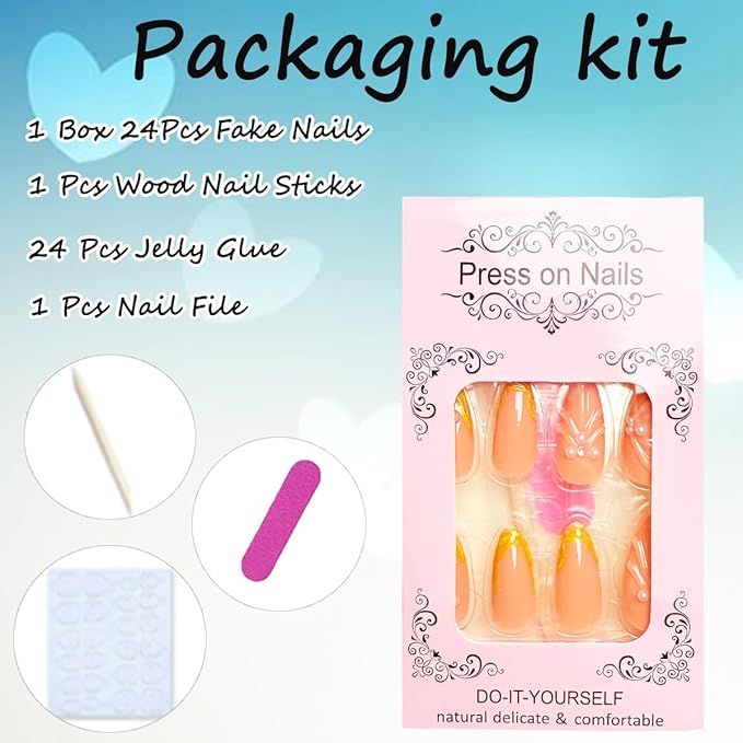 - Convenient Use: The almond shape false nails use process is surprisingly simple. Choose the one that suits you from a variety of sizes, apply the included jelly glue on your nails, and then press lightly to create beauty acrylic nails. No need to spend a lot of time and money going to a nail salon, you can easily do it at home