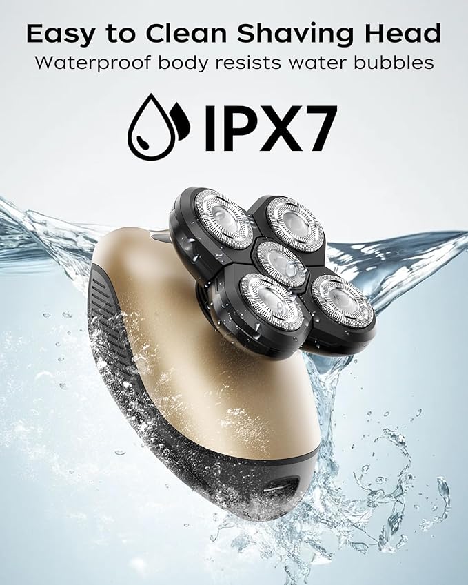 - FLEX HEAD SHAVER - The 5D Floating Head and Body Shaver for Men,Smooth shave your head, body, and groin without leaving bumps and irritation! Ultra flexible 5D rotary shaver design with double ring blade, self-sharpening blades and 360° floating shaving, moves smoothly across the skin that adapts perfectly to every curve of your scalp, neck and face.The electric shavers combined with a high-speed motor, which can capture more hair every time, giving you a clean and close shave.
