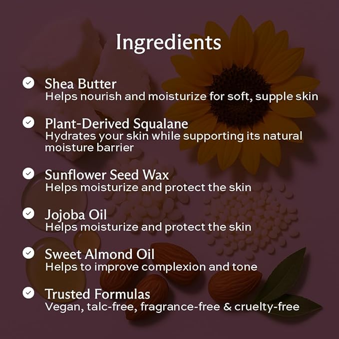 - FORMULA FORWARD: all formulas are created with dry, sensitive skin in mind. Perfect for all ages, teens to mature skin, while being vegan, cruelty-free, fragrance-free, gluten-free, talc-free, and paraben-free.