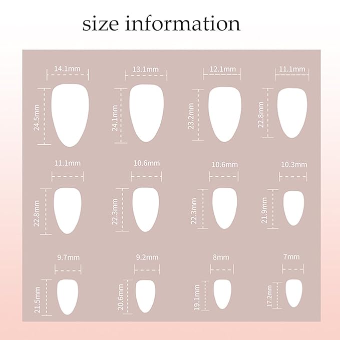 - Materials: full cover almond artificial fingernails are made from acrylic material, moderate thickness, natural fit, bringing you a wonderful nail art experience
