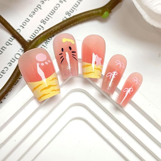 - Kind Tips: Cat face press on nails package does not contain nail glue, the durability of jelly gum is limited, we suggest you use your own glue