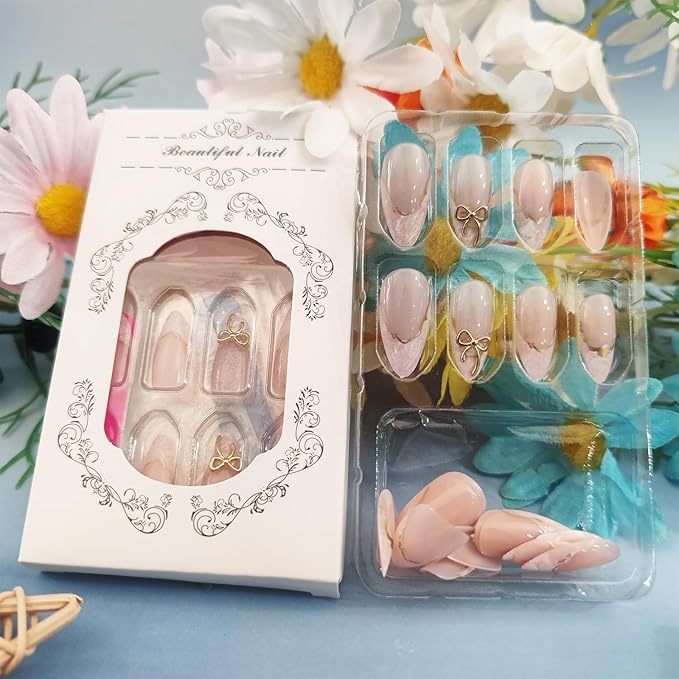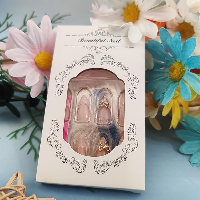 - Easy to Apply: Just choose the nail piece that suits you, polish the nail bed, paste the jelly glue we provide, and press trendy nails for 30s to get the natural 3d gold bow manicure that girls like