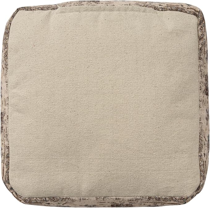 L. R. Resources, Inc. LR Home Vintage Floral Square Indoor Medium Pouf Ottoman, Taupe | Power-Loomed Polyester Footrest for Bedroom & Living Room Decor | 18 x 18 x 18 Filled Pouf for Seating