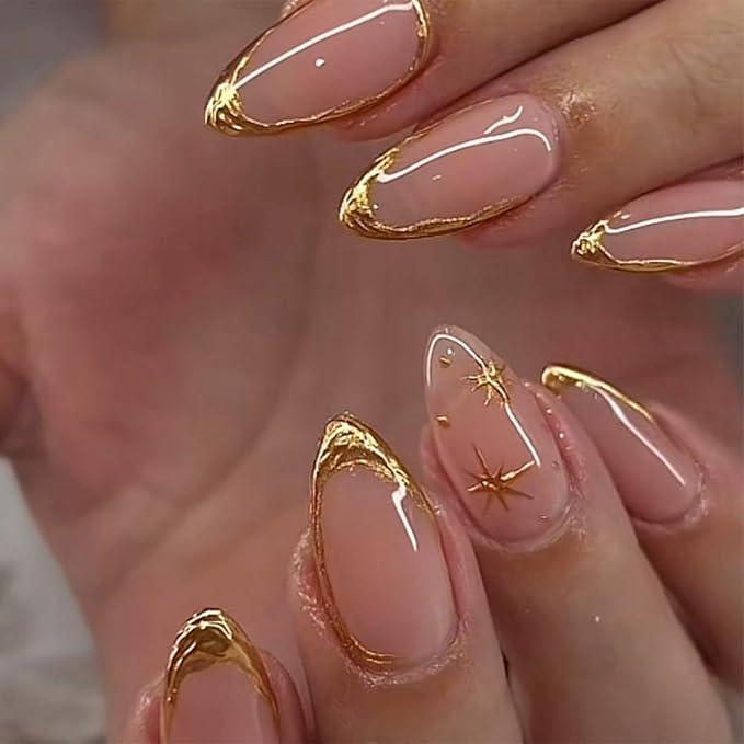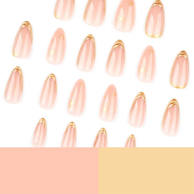 - Gold french tip Kit for Nails: Each set includes 24pcs Almond press on nails short, 24pcs adhesive nails tabs, 1 wooden stick, and 1 nail file. Everything you need for a salon-quality manicure at home