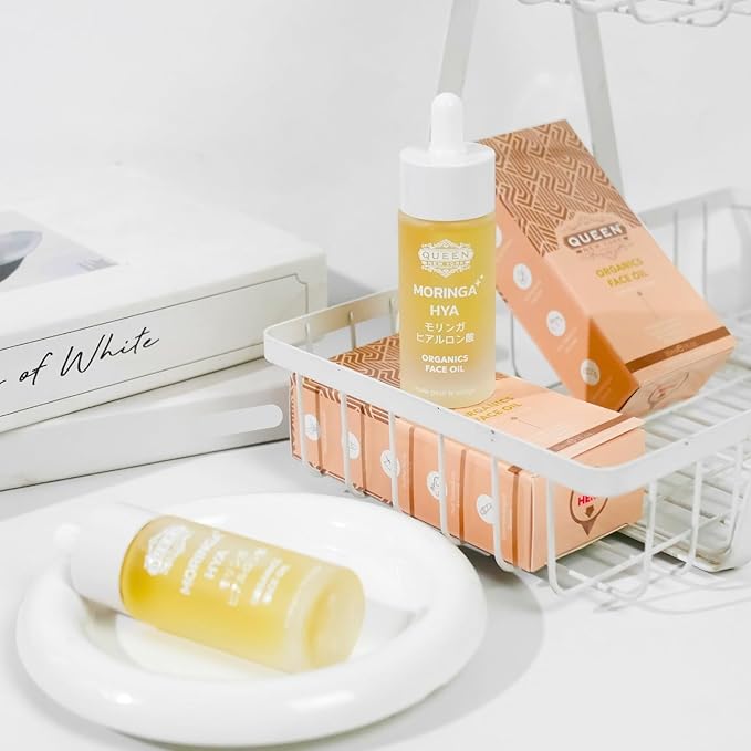 QUEEN MORINGA HYA – Organic Moringa Oil with Hyaluronic Acid for Face – Hydrating & Anti-Aging Facial Oil Serum – Lightweight, Fast Absorbing, Non-Comedogenic, Fragrance-Free Moisturizer - 1 fl oz