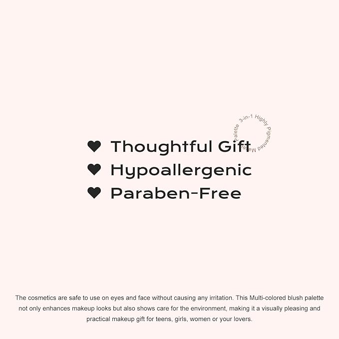 - 3-IN-1 Cream Makeup Palette -- This trio is a stack for travel, comes with cream blush, cream bronzer, and cream highlighter in one compact face palette with a mirror.Multi-colored makeup palette is a perfect blend of daily complimentary hues Also as contour to accentuate & enhance cheekbones for a fresh, healthy natural-looking flush.