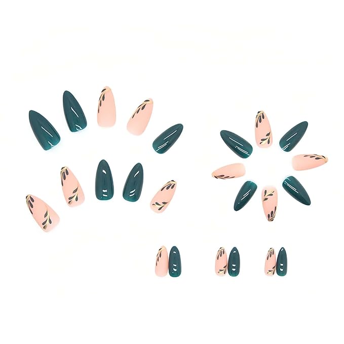 - Press - on nails are a true beauty gem. The deep, rich green color serves as a striking base, exuding an air of elegance and mystery. Delicate leaf - like patterns, outlined with a touch of gold, add a touch of nature's charm and a hint of luxury.