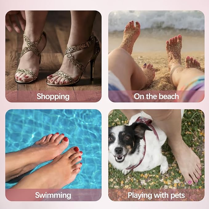 - 【Toe-Friendly Material】Misssix press on toenails are made from newest soak off soft gel material, which is more malleable and pre-shaped. This allows these fake nails can get back into shape after bending and will not produce marks or cracks.