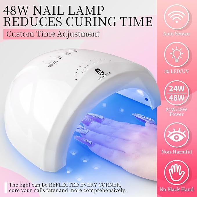 - Clara Colors 48W UV LED Nail Lamp: Clara Colors poly gel nail kit with 48W UV LED light. 12pcs colors nail extensions gel can be cured fast with this premium nail dryer. It's suitable for all kinds of polygel, gel nail polish, nail prep dehydrator, nail primer, base coat and top coat ect. Your average curing time is shortened by 50% with this nails light. Ideal for you creating poly gel nail arts at home or salon with this poly gel nail kit.