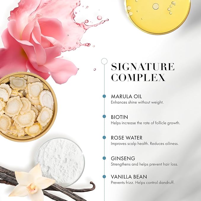 - Strength, Shine & Signature Scent - Biotin, ginseng, white truffle, marula oil, coconut oil, rose water and vanilla bean support strength, boost shine, tame frizz and restore silky softness, finished with our uplifting Glacé Tropical Citrus scent.