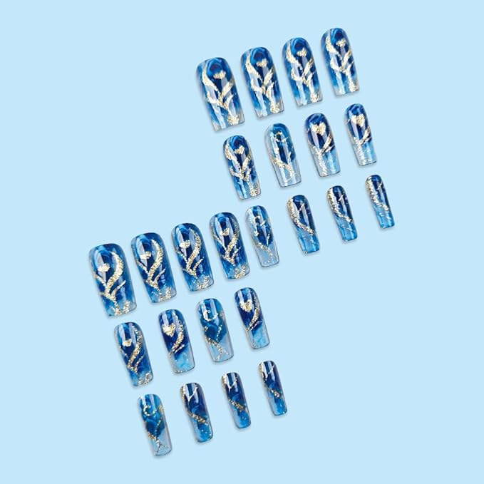 - 【Various sizes】Square press on nails have 12 different sizes of nails, 24Pcs fake nails, and the free strips can be trimmed to any size you like and fit.