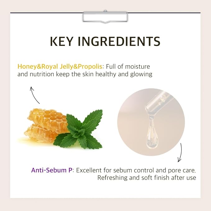 - [Nourishing Honey Complex] Enriched with honey, propolis, and royal jelly to restore dull skin with balanced nutrition.