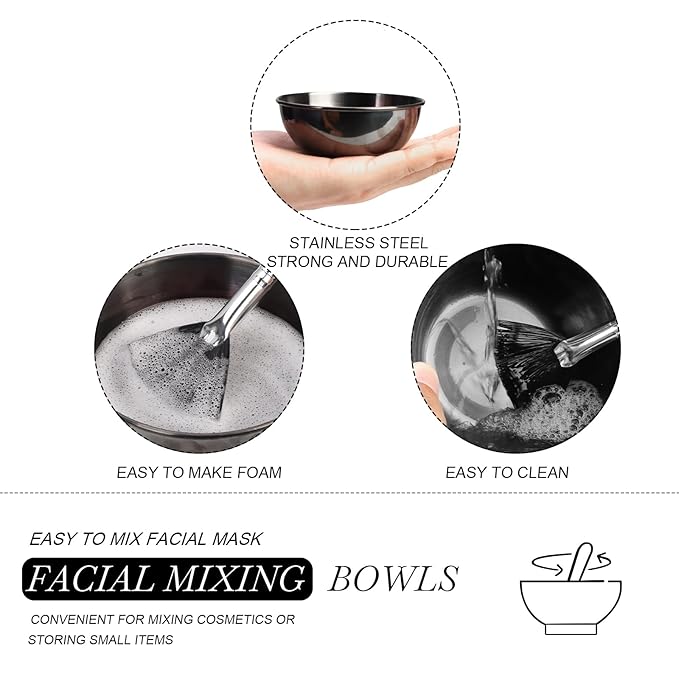 - 4. Durable: The black esthetician supplies is made of high-quality materials. The face mask bowl is made of stainless steel, which is sturdy and durable, and there is no need to worry about breaking it; the bristles of the makeup brush and flat mask brush are soft and not easy to shed, with good powder grabbing power and ductility. Facials tools is easy to clean after use and can maintain a good use state for a long time, providing gentle care for your skin.Facials kit is a reliable partner for your daily beauty and skin care.