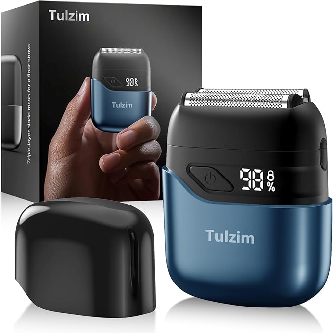 Electric Foil Shaver for Men: Portable Electric Razor for Beard/Face - 3 Floating Blade LED Display USB-C Fast Rechargeable - IPX7 Waterproof for Travel & Home - Blue
