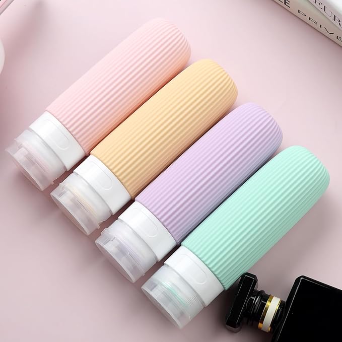 - TSA carry on approval: 4 pack 3 oz silicone travel bottles, very suitable for shampoo, conditioner, shower gel, lotion, hand sanitizer and shower gel. It is equipped with a high-quality zipper transparent wash bag, which saves space and allows you to travel long distance freely like a professional.