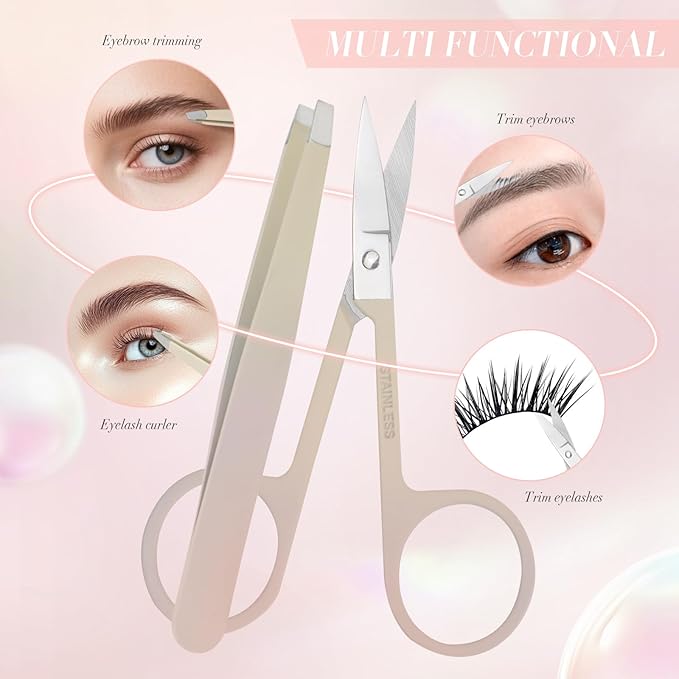 - ALL-IN-ONE PROFESSIONAL EYEBROW KIT: Your complete eyebrow solution. This 6-piece set includes Slant, Pointed, and Flat Head Tweezers for every need (shaping, precision work, splinters), sharp Angled Scissors, a metal cuticle pusher, and a fine-tooth comb. No more buying tools separately!