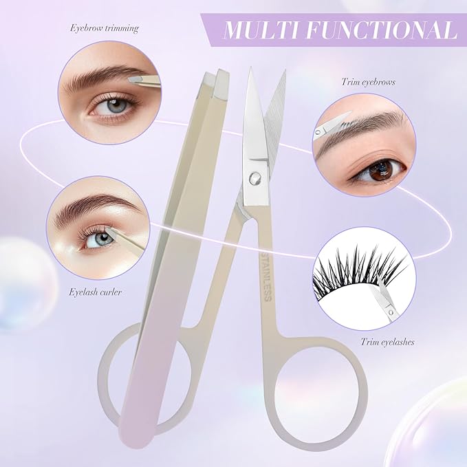 - ALL-IN-ONE PROFESSIONAL EYEBROW KIT: Your complete eyebrow solution. This 6-piece set includes Slant, Pointed, and Flat Head Tweezers for every need (shaping, precision work, splinters), sharp Angled Scissors, a metal cuticle pusher, and a fine-tooth comb. No more buying tools separately!