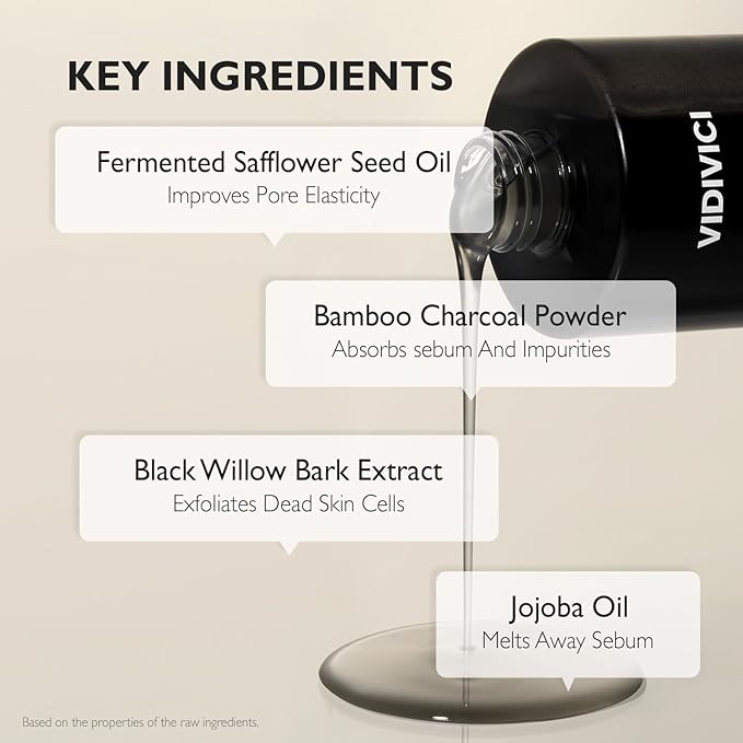 VIDIVICI Clear Pore Control Deep Cleansing Oil 10.14 fl.oz | Makeup remover with blackhead care, Korean facial cleanser for oily skin, Sebum control with Bamboo Charcoal Powder, Korean skin care