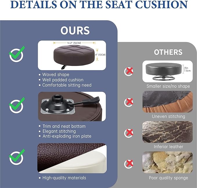 - Comfortable & Durable - a professional stool chair with a well padded seat cushion & high-density rebound sponge,thickened high quality bonded leather upholstery,which is water and oil proof,easy to clean and maintain.