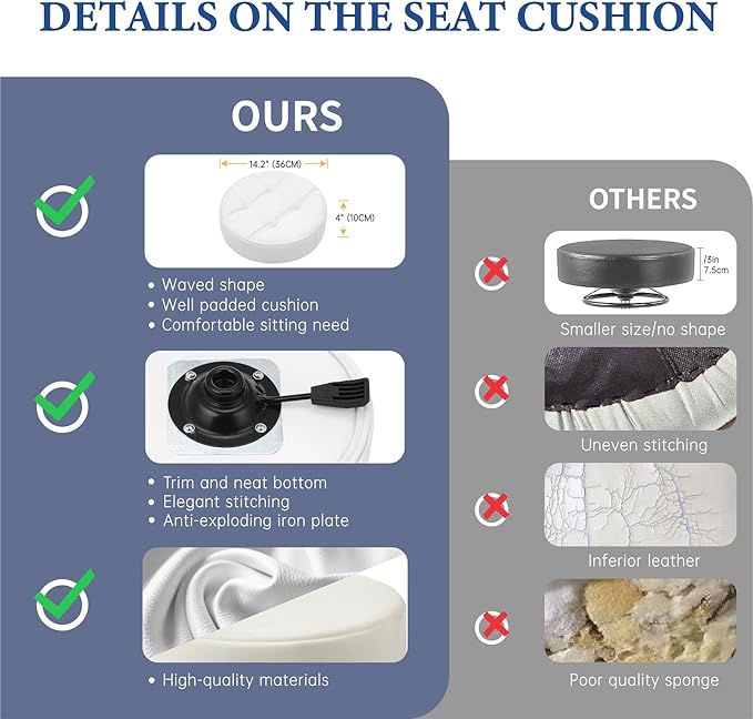 - Comfortable & Durable - a professional stool chair with a well padded seat cushion & high-density rebound sponge,thickened high quality bonded leather upholstery,which is water and oil proof,easy to clean and maintain.