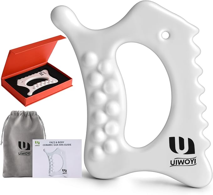 6-in-1 Ceramic Body Gua Sha Facial Tools | Lymphatic Drainage Tool, Face Sculpting Tool & Acupressure Tool | Body Guasha | Trigger Point Massage Tool for Fascia Massage and Cellulite