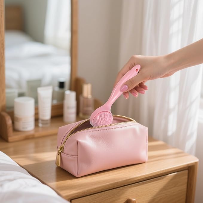 2 Pack Silicone Face Scrubber Exfoliating Brush, Manual Handheld Facial Cleansing Brush Blackhead Scrubber, Soft Bristles Waterproof for Face Skincare (Round-Pink)