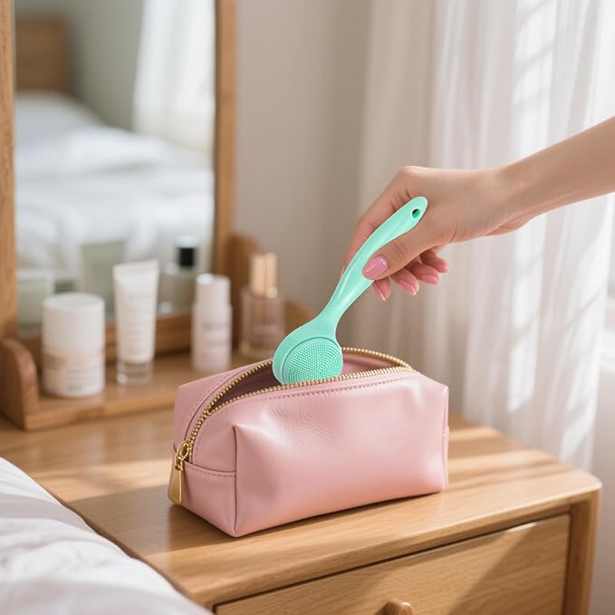 2 Pack Silicone Face Scrubber Exfoliating Brush, Manual Handheld Facial Cleansing Brush Blackhead Scrubber, Soft Bristles Waterproof for Face Skincare (Round-Green)