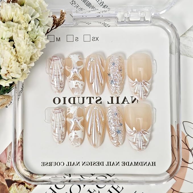 - Exquisite Design : Our shell fake nails is made of acrylic material. Features a classic 3d rhinestones design to make your nails look more noble and will give you a nice manicure experience.