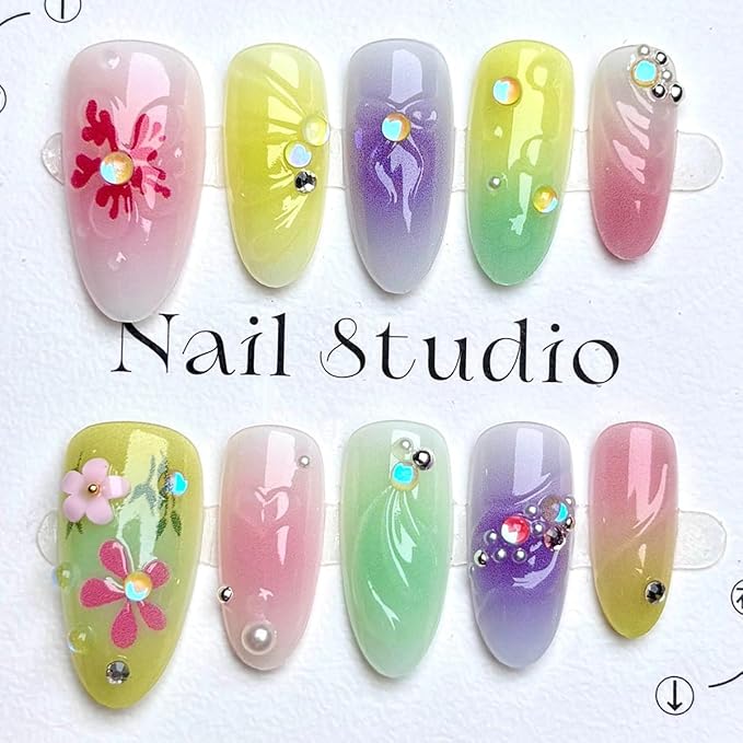 - Wide Applications : Cute bow press on nails suitable for various social occasions great for nails salon,DIY home nails art, Colorful floral false nails perfect to be used on wedding ,prom ,dating, festival.It is given the perfect gift for partners, family, friends.