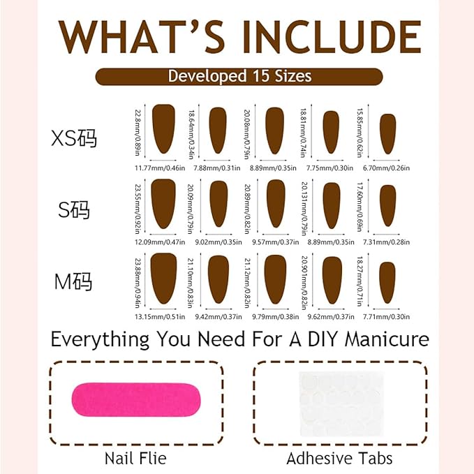 - Package About : You will receive 24pcs cute bow press on nails, 1 mini nail file, 1 small wooden stick, and 1 pieces nail glue stickers. Jelly glue is not as durable as liquid glue, but it makes medium almond fake nails reusable. Please use suitable glue according to different scenes.