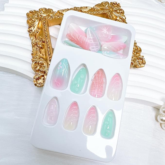 - Summer Kit for Nails: Each set includes 24pcs Almond press on nails medium, 24pcs adhesive nails tabs, 1 wooden stick, and 1 nail file. Everything you need for a salon-quality manicure at home