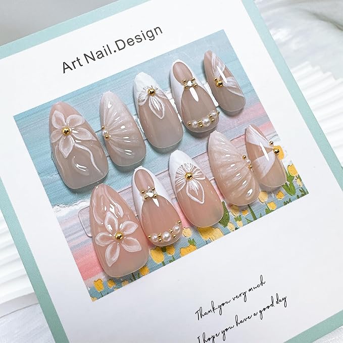- Flower Kit for Nails: Each set includes 24pcs Almond press on nails medium, 24pcs adhesive nails tabs, 1 wooden stick, and 1 nail file. Everything you need for a salon-quality manicure at home