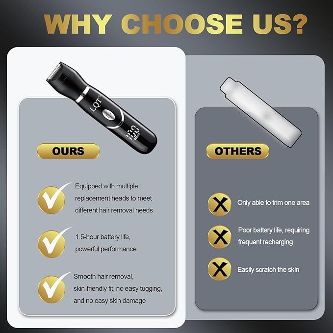 - 👙【Waterproof & Easy Cleaning】: The four heads of the LQT Pubic Shaver Bikini Trimmer Set are IPX7 compliant, allowing you to use it with shaving foam or dry. Its water-resistant feature makes cleaning a breeze—simply rinse under running water (please note that the body is not waterproof).