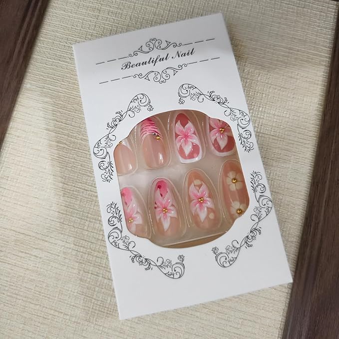 - Package: You will get 24pcs 3D flower press on nails with designs, almond shaped false nails, 1pcs nail file, 24pcs nail jelly stickers and 1pcs wooden stick. You can easily change your nail style at home