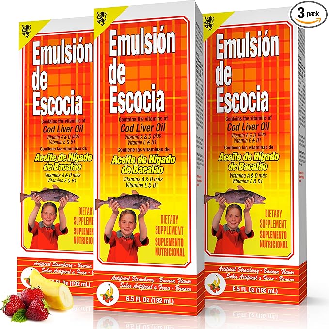 Emulsion de Escocia Strawberry Banana Flavor with Vitamins and Cod Liver Oil for Kids and Adults | Pleasant Taste | Immune and General Health Support | 6.5 Oz | 3-Pack