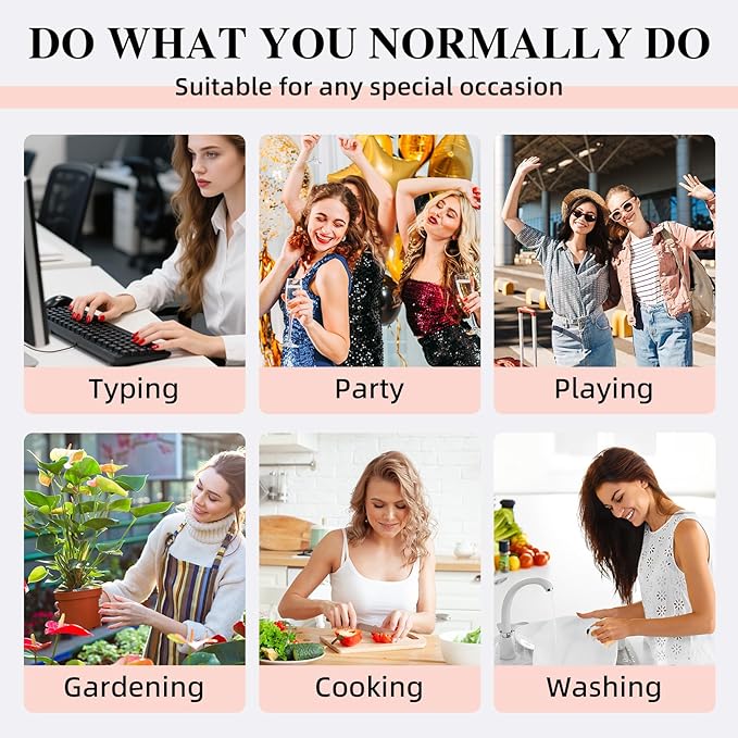 - Natural Look & Comfortable Wear - Made with flexible soft gel, our fake nails apply zero pressure to nail beds. The seamless cuticle line and gentle flex feel just like real nails. The lightweight design stays secure through typing, gardening, workouts, and even sleeping—no lifting or pinching
