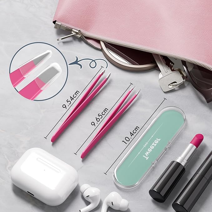 - Professional Precision Tool: Our 2-pack pink eyebrow tweezers set includes both slant and pointed tip tweezers, designed for ultimate precision, allowing you to tackle any hair removal task with ease