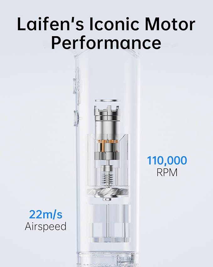 - 【High-Speed Brushless Motor & Fast Drying】Laifen hair dryer is equipped with a 110,000 RPM high-speed brushless motor, wind speed reaches 22m/s. Strong airflow can dry hair faster, speed up your routine.