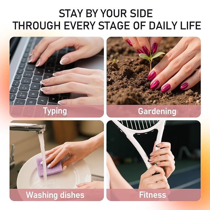 - High-Quality Design:The surface of BelleOynx fake nail tips is crafted with innovative technology,effortlessly with standing daily activities.Whether you’re typing at work, gardening,or playing with pets,these short almond press on nails stay in place and maintain a flawless look all day.