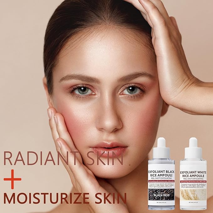 - 【Rice Exfoliating Ampoule Set】 Black and White Rice Exfoliant antioxidants gently remove dead skin cells and refine skin texture, leaving skin radiant and smooth with every use.