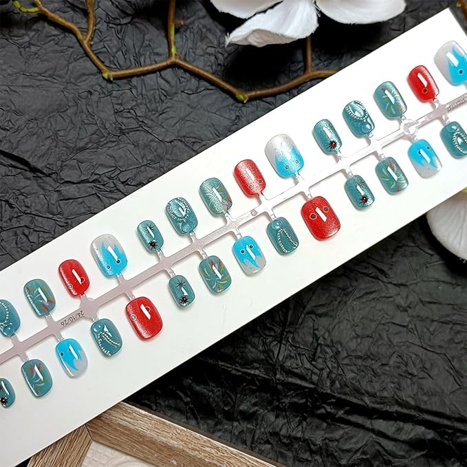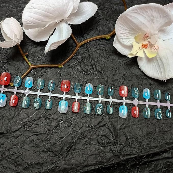 - Blue Cat Eye Press on Nails by Gel: These short nails glue on come in a variety of stylish designs and colors, allowing you to express your unique personality and keep up with the latest trends