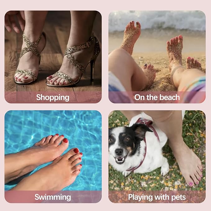- 【PERFECT CHOICE FOR SUMMER】: You can use Vansiho press on toenails when you wear open toe shoes, tennis shoes or sandals. Perfect for special occasions, such as shopping, on the beaching, swimming or playing with your pets.