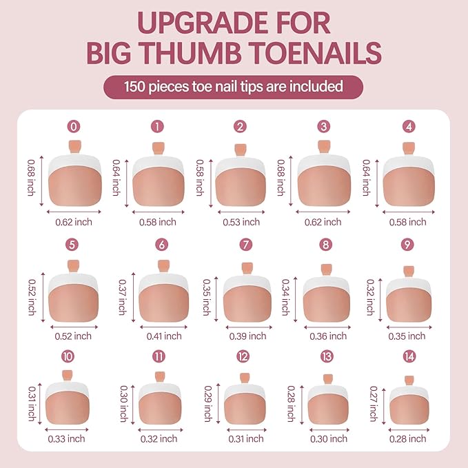 - 【MATTE SURFACE TOENAILS】: The matte surface enables you to easily create patterns, add rhinestones, or apply stickers, allowing you to devote more time and energy to crafting unique designs without the need to spend significant time and effort on basic French patterns.
