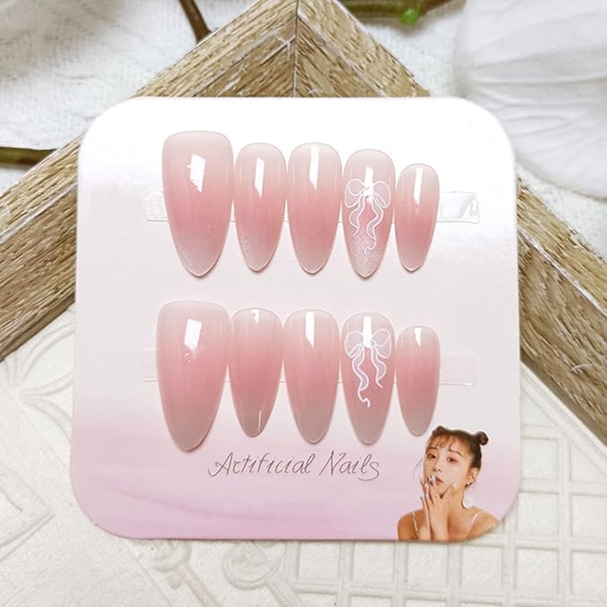 - Ideal Gift: cute bow nails press on fingernails, shine nude pink nail designs, beautiful gifts for wife, sisters, mother and friends. Suitable for wedding, parties, and daily elegant styling