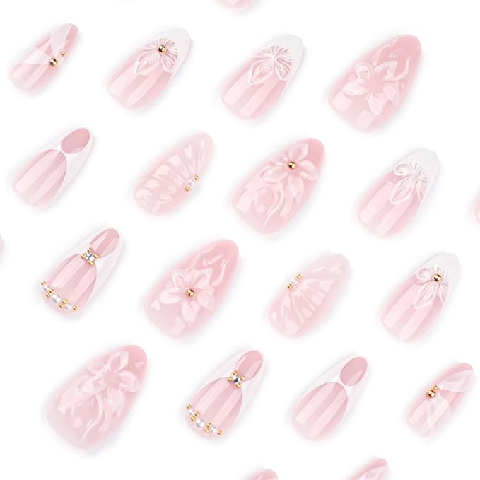 - Easy to Apply: French tip fake nails are instead of spend lots time, you can change you nails style in 15 min .Clean your nails before use and avoid using water for the two hour after wearing them , flower acrylic nails press on will stay longer