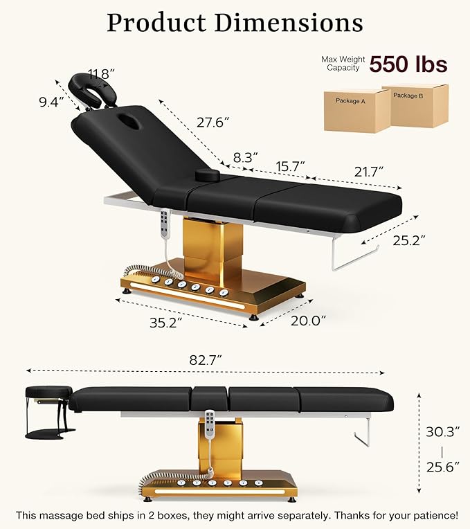 - User-Friendly Design: This beauty bed is equipped with both hand and foot controllers for easy adjustment, allowing you to keep your hands clean while offering maximum convenience. The facial breathing hole and the hanging bar under the bed provide extra functionality and comfort, making treatments easier for both professionals and clients. This bed is designed to meet a wide range of needs and is the best value investment for your salon