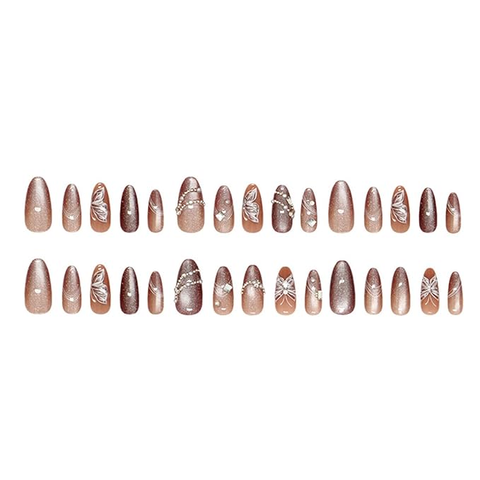 - Easy to Apply: These 3d butterfly pearl rhinestone designs french nails press ons are instead of spend lots time, you can change you nails style in 15 min .Clean your nails before use and avoid using water for the two hour after wearing them , french acrylic nails press on will stay longer.