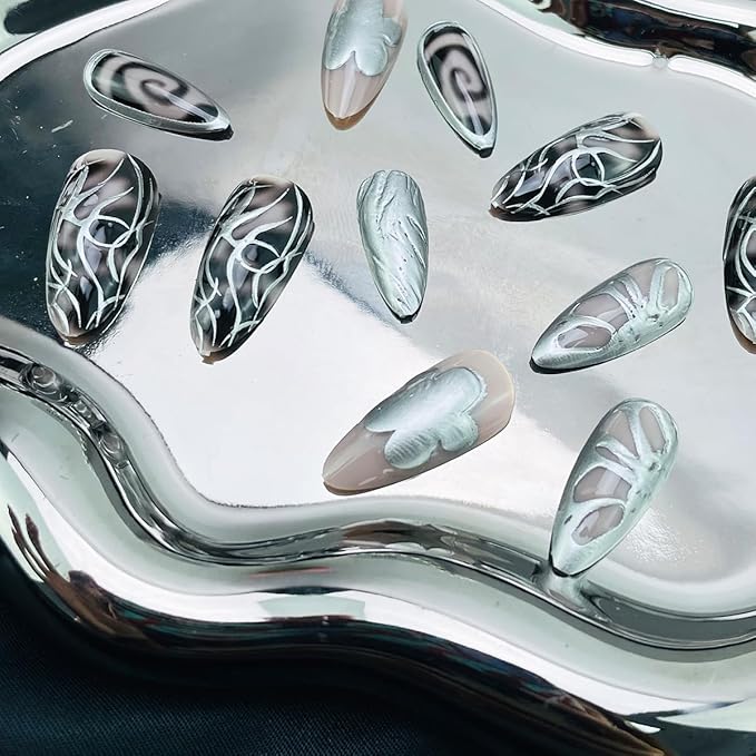 - Perfect Handmade Nails Accessories: 3D Silver y2k fake nails can be worn perfectly for prom, party or any great occasion, a great gift idea for your wife, girlfriend, mother or sister. Perfect for Christmas, Halloween, prom, party or any wonderful occasion,suitable for any DIY nail art, family day or getting ready for a date.